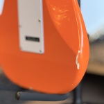 This guitar has some blemishes located on the bottom, back, and top of the body. The blem on the top has been clear coated over and is likely a factory B-stock. The bottom back blems are not visible from the front (pictured). The rest of the guitar is in excellent condition from the neck, frets, headstock, tuners, and electronics.